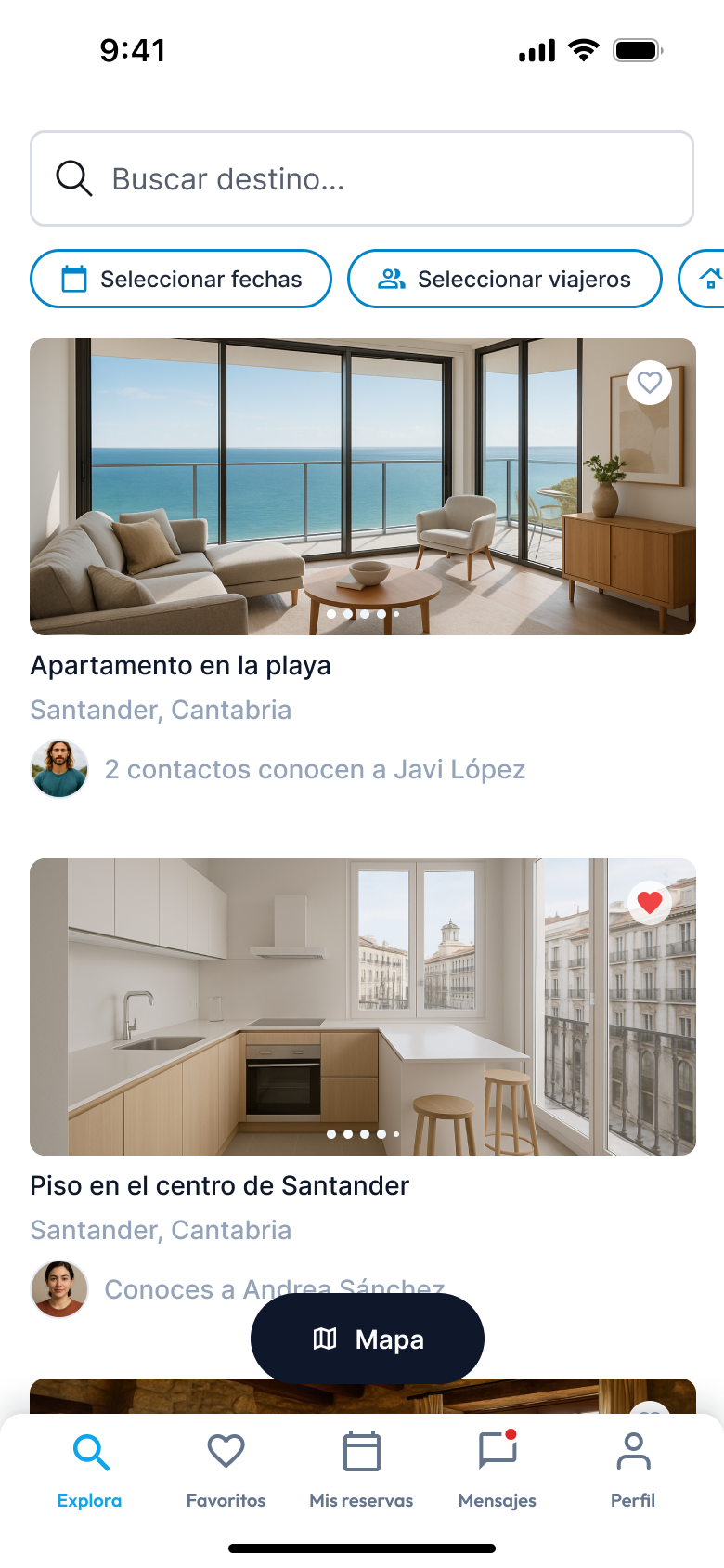 Busca lugares donde tus contactos tengan propiedades disponibles, selecciona tu favorita y envía una solicitud de acceso al anfitrión.